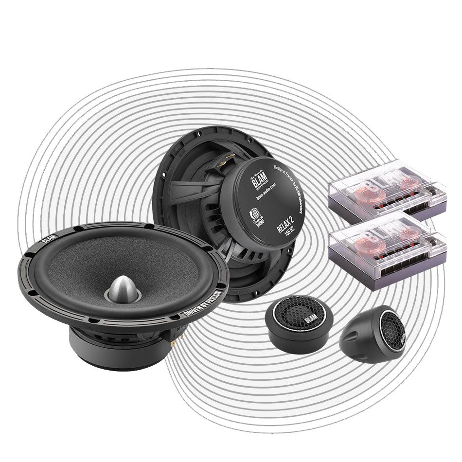 The 165 mm 2-way separate speaker system consists of two 165 mm woofers and two 20 mm soft dome tweeters, delivering high-quality sound with a maximum power of 150 W and a sensitivity of 95 dB. The frequency response extends from 60 Hz to 25 kHz, and the system has an impedance of 2 Ω. The woofers have high-quality cellulose pulp cones and are equipped with butyl suspensions, offering optimum durability and performance. The tweeters benefit from a N38 neodymium motor and a soft dome, ensuring precise reproduction of high frequencies. The system includes 2-way filters to manage low and high frequencies, with an adjustable tweeter level according to preference. Mounting accessories and an instruction manual complete the set.