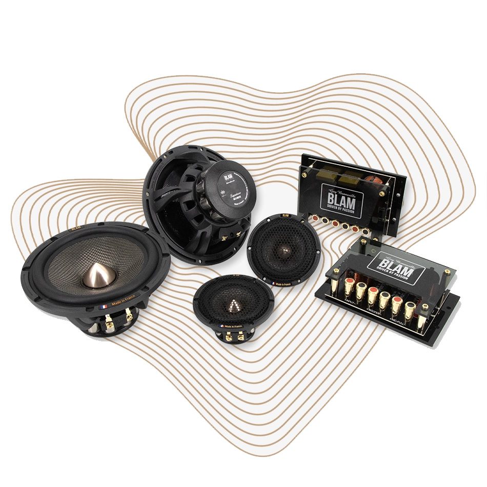 Die-cast aluminum basket – Ultra rigid 3K carbon fiber membrane – NBR surround – Double spider with integrated braids – 38 mm voice coil on fiberglass former – Oversized 10 sticks neodymium magnet – Machined aluminum phase plug – Gold plated terminal – Paired products at +/- 1dB