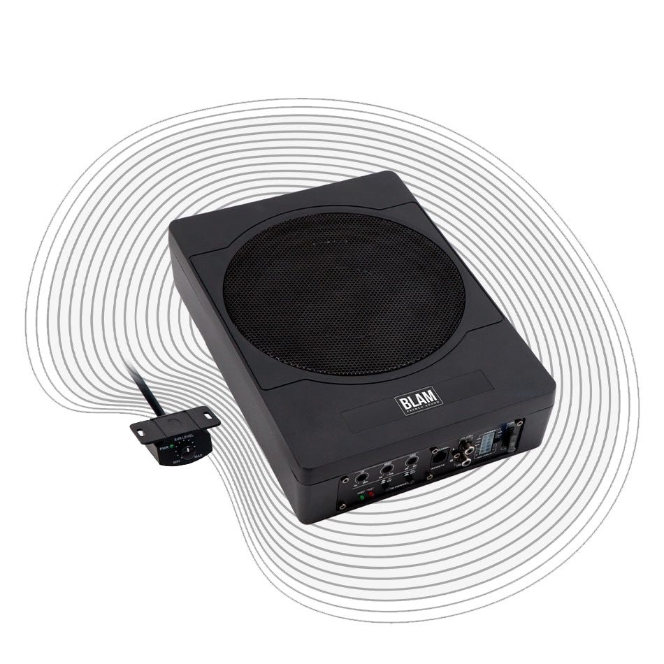 Extra-flat 20 cm die-cast aluminum subwoofer with integrated 240 W amplifier